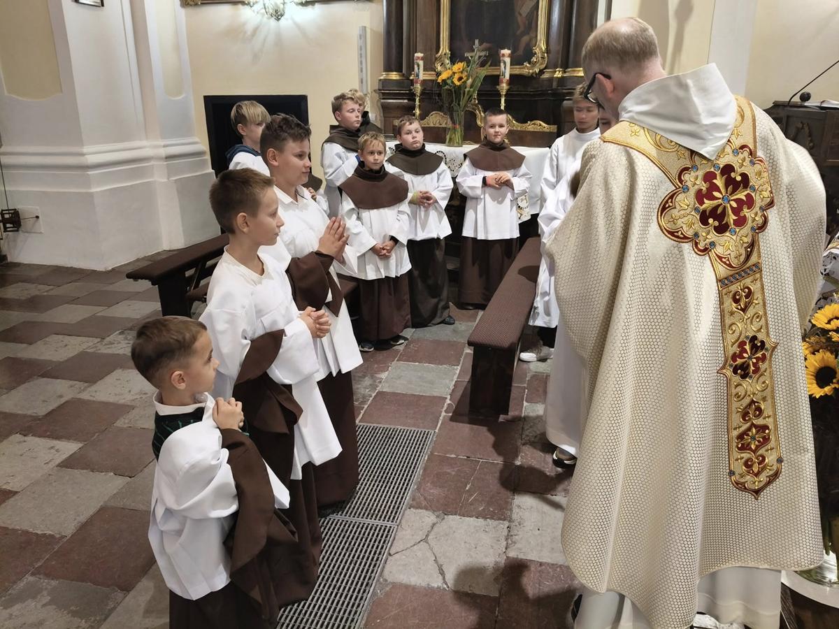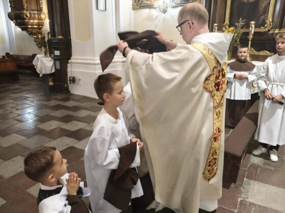 Dziś w pierwszy czwartek miesiąca trzech naszych ministrantów Seweryn, Oskar i Jerzy otrzymali stroje ministranckie noszone w naszych franciszkańskich parafiach.