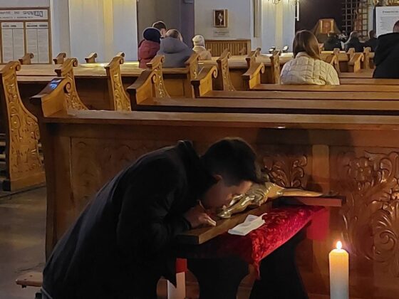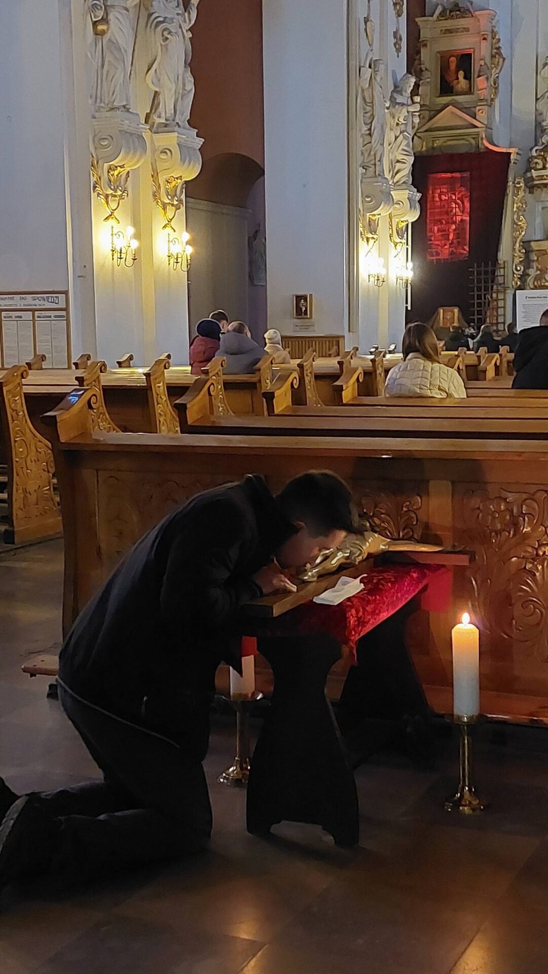Liturgia Wielkiego Piątku w kościele Kościół Franciszkanów przy pl. Bernardyńskim w Poznaniu zgromadziła licznych wiernych, którzy wspólnie przeżywali jeden z najbardziej poruszających momentów roku liturgicznego. W atmosferze ciszy i skupienia uczestnicy wsłuchiwali się w opis Męki Pańskiej, oddając się modlitwie oraz refleksji nad tajemnicą krzyża. Centralnym punktem celebracji była adoracja Krzyża.