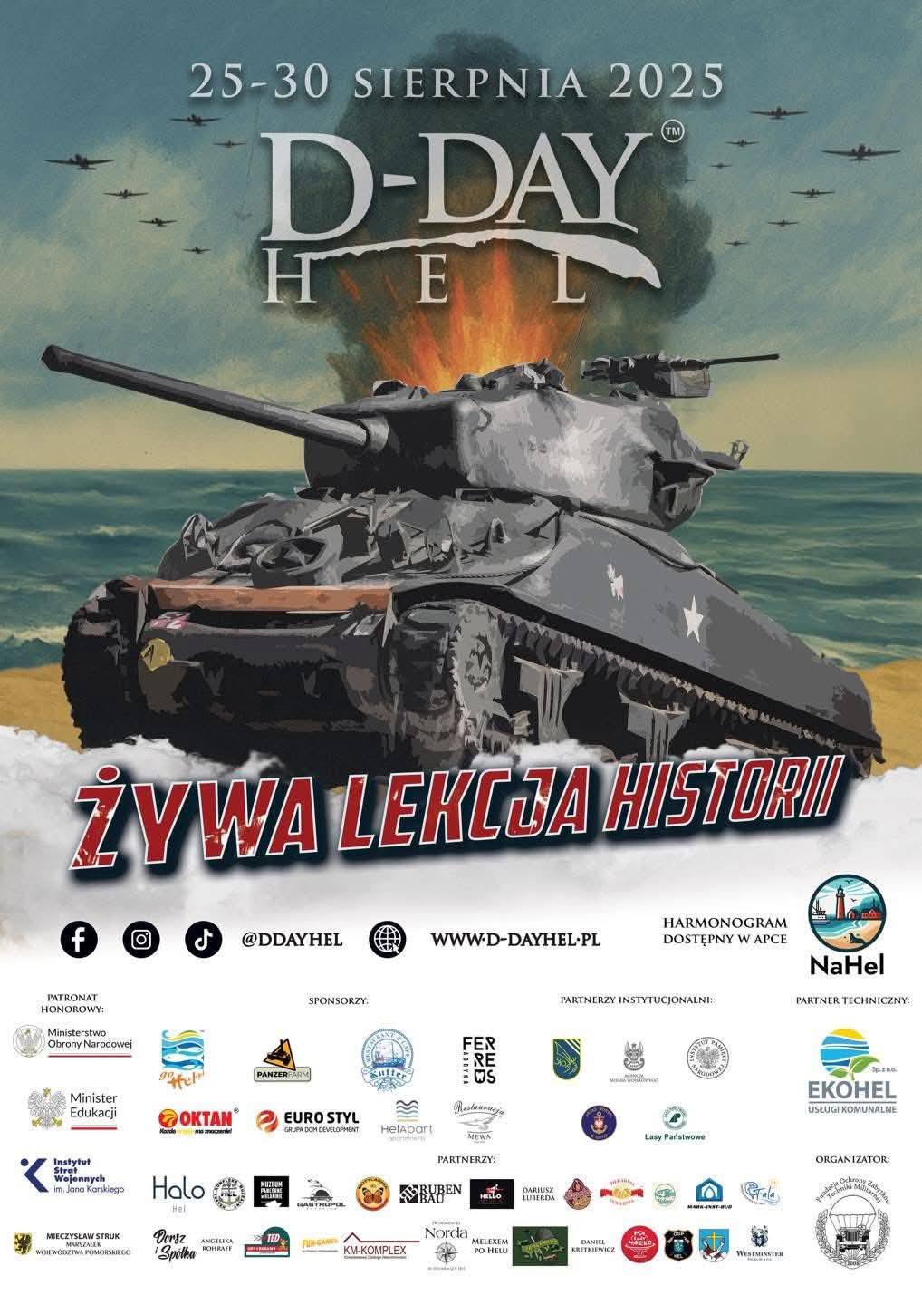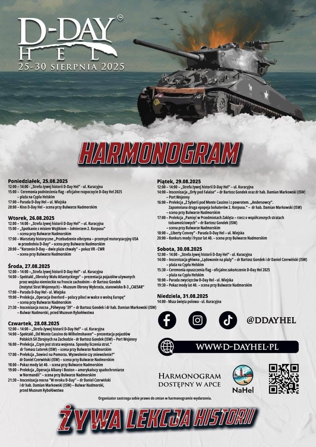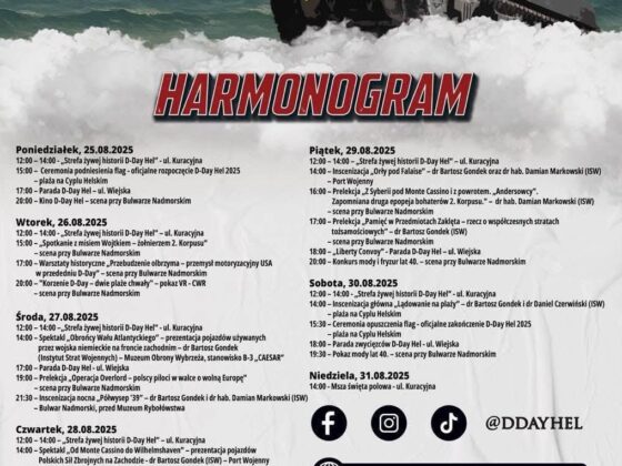 Serdecznie zapraszamy! Zapraszamy także do uczestnictwa w „Żywej lekcji historii” D-Day Hel 2025. Szczegóły na plakatach.