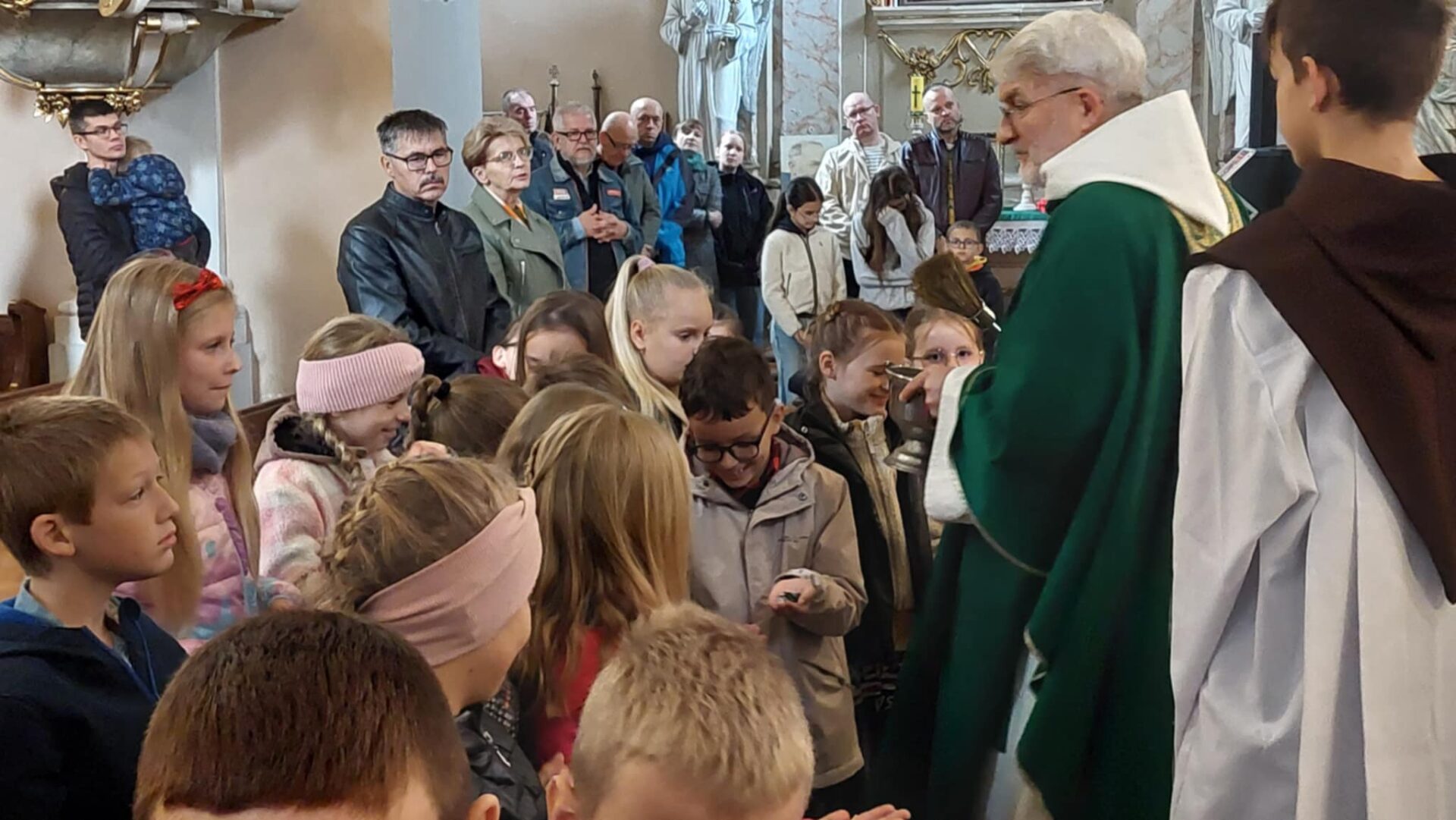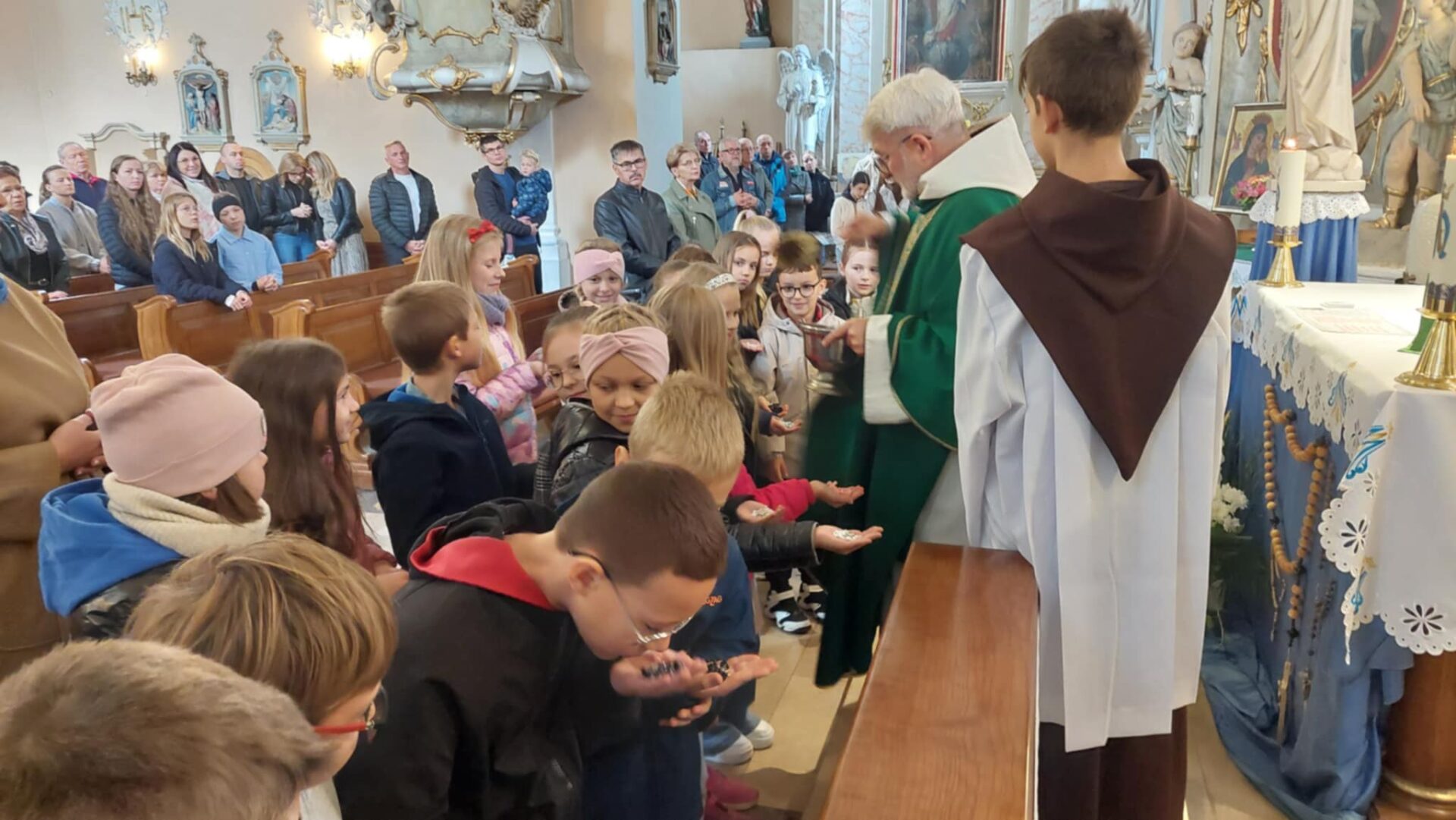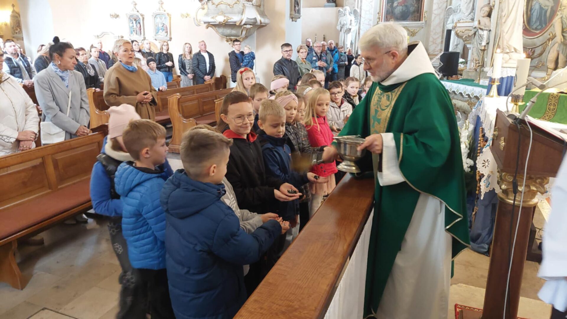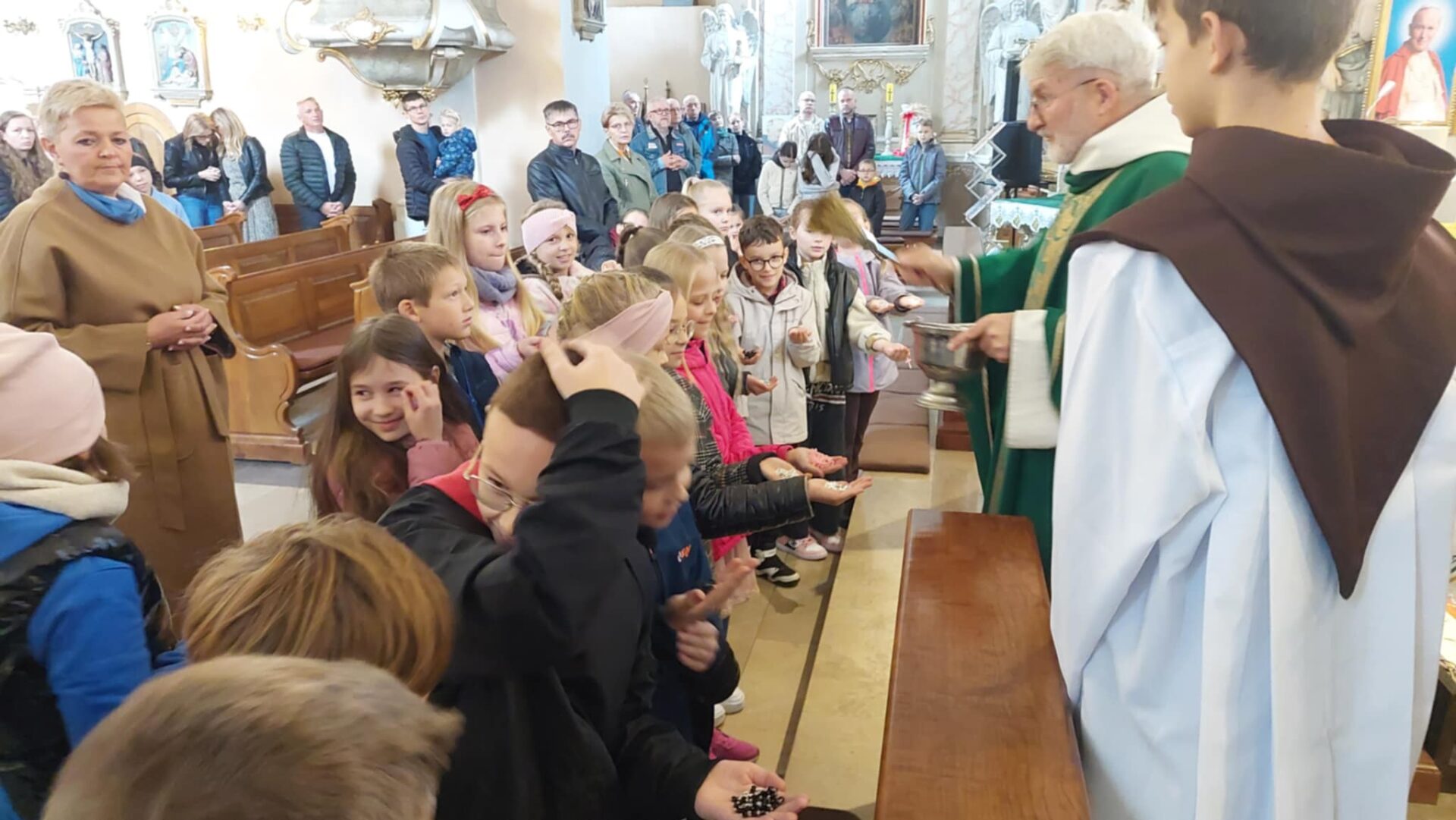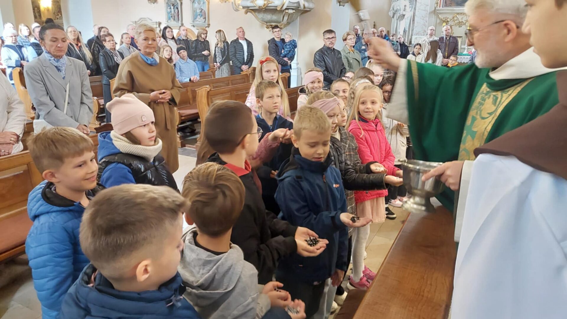 Dla najmłodszych parafian był to wyjątkowy moment – po raz pierwszy otrzymali swoje różańce, które będą im towarzyszyć na drodze modlitwy.