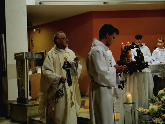 O godz. 18.00 wierni zgromadzili się na wspólnym różańcu, przygotowując swoje serca do udziału w Mszy Św. Odpustowej. Centralnym punktem uroczystości była uroczysta suma odpustowa, odprawiona o godz. 18.30. Po Mszy Świętej odbyła się procesja eucharystyczna wokół placu kościelnego, stanowiąca piękne zwieńczenie dnia pełnego modlitwy, wdzięczności i wspólnotowej radości.