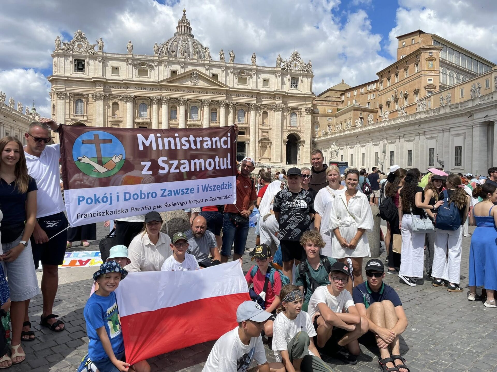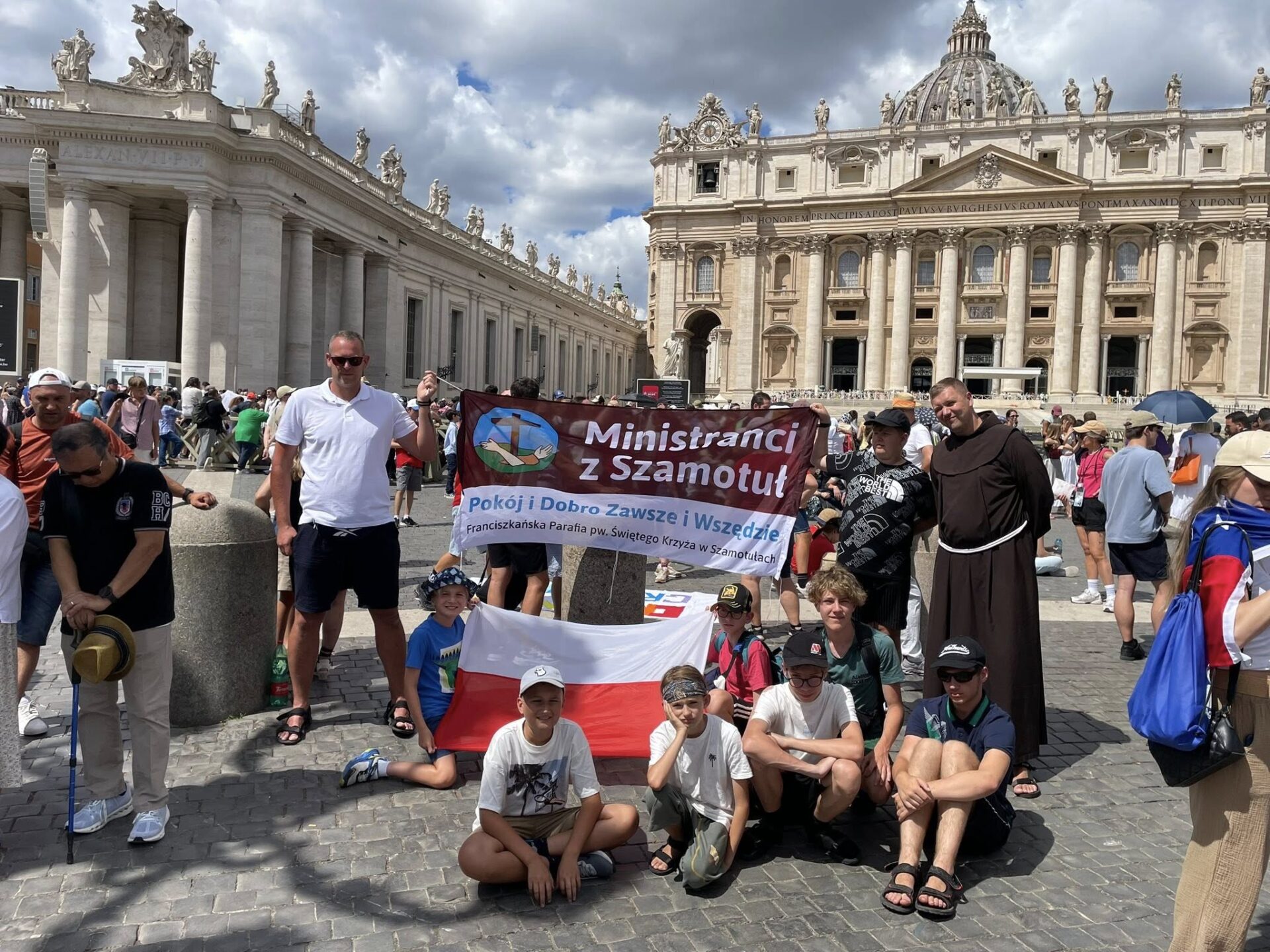 Na zdjęciach nasi ministranci wraz z rodzicami przed modlitwą Anioł Pański w Rzymie. Dziękujemy wszystkim, którzy wsparli nasz zeszłotygodniowy wylot do Wiecznego Miasta podczas kiermaszu przed kościołem oraz Bankowi Spółdzielczemu w Dusznikach z siedzibą w Szamotułach. Dla Boga i dobra drugiego człowieka, w myśl: ,,Starajcie się zostawić ten świat choć trochę lepszym, niż go zastaliście”. Robert Baden-Powell